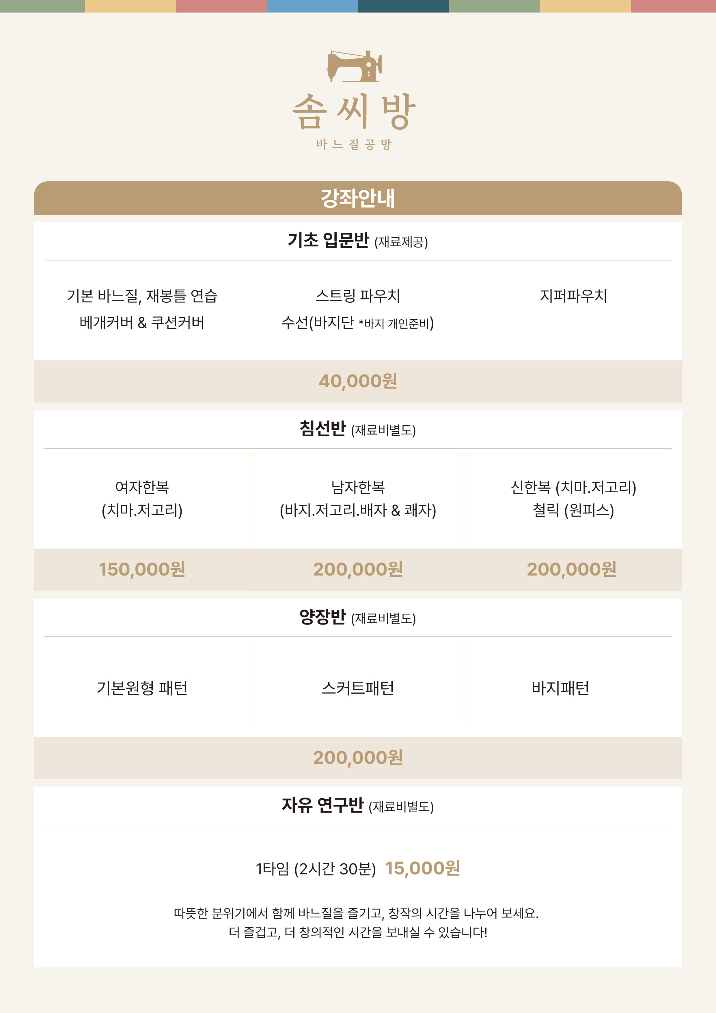 1:1 맞춤 지도로 바느질 기초부터 응용까지 차근차근 배워보세요.